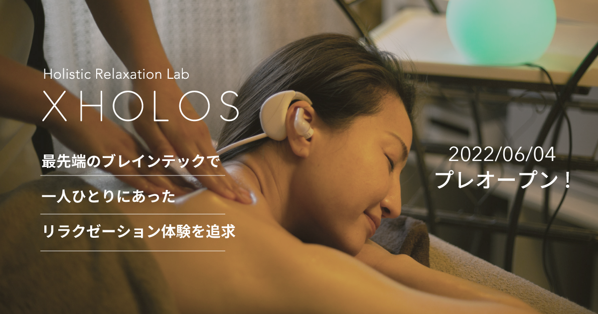 サービス概要:CyberneXが独自に開発したイヤホン型BCI“XHOLOS Ear Brain Interface”をお客様自身が装着し、脳情報を基に最適なリラックス状態を探索できる、世界初*のEar Brain Interfaceを活用した包括的なプレミアムプライベートサロンです。