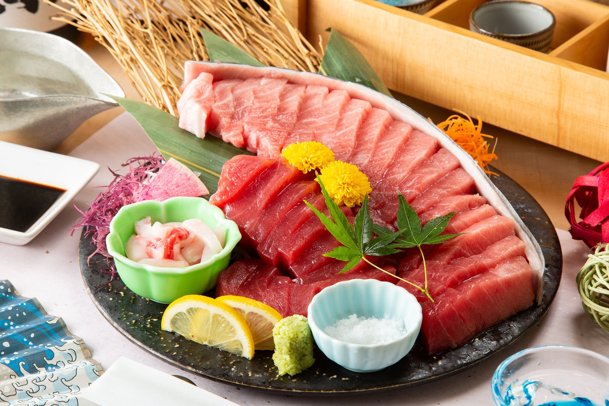 「海の黒いダイヤ」九州産生本マグロ(黒マグロ)。赤身から大トロまで食べられる断面刺しは見た目のインパクトも<大>