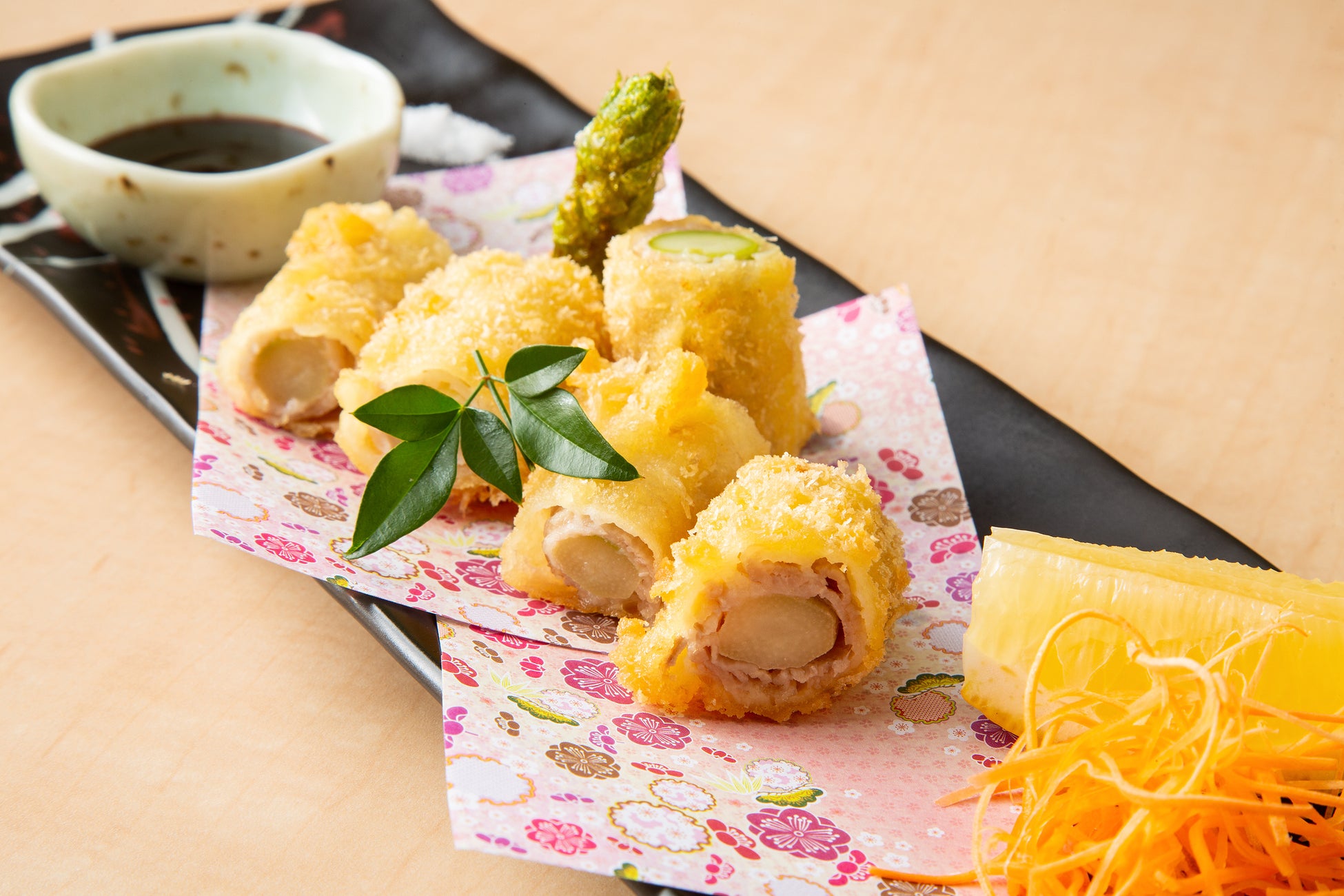 生でも食べられる新鮮なアスパラを豚巻きで一口カツに。