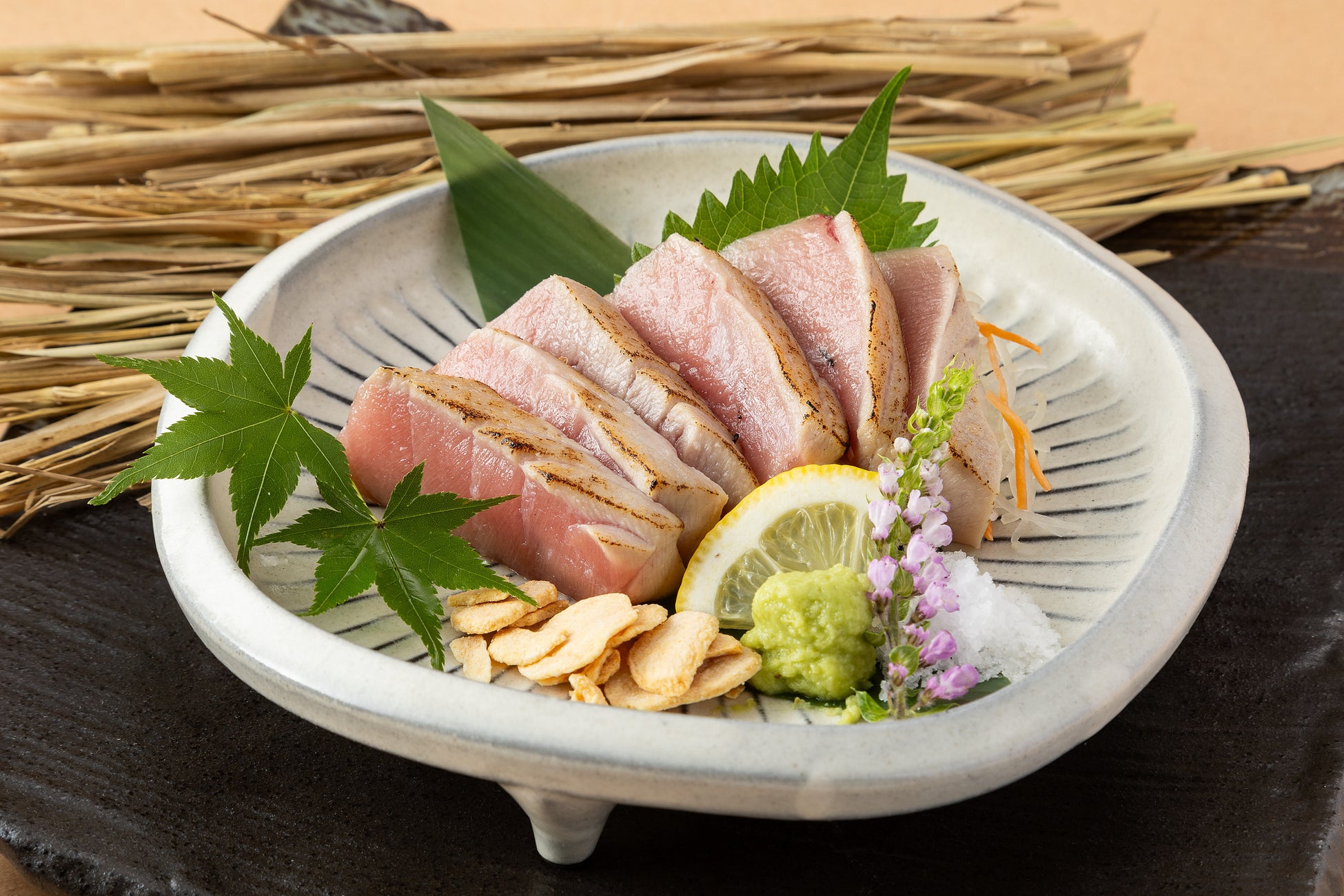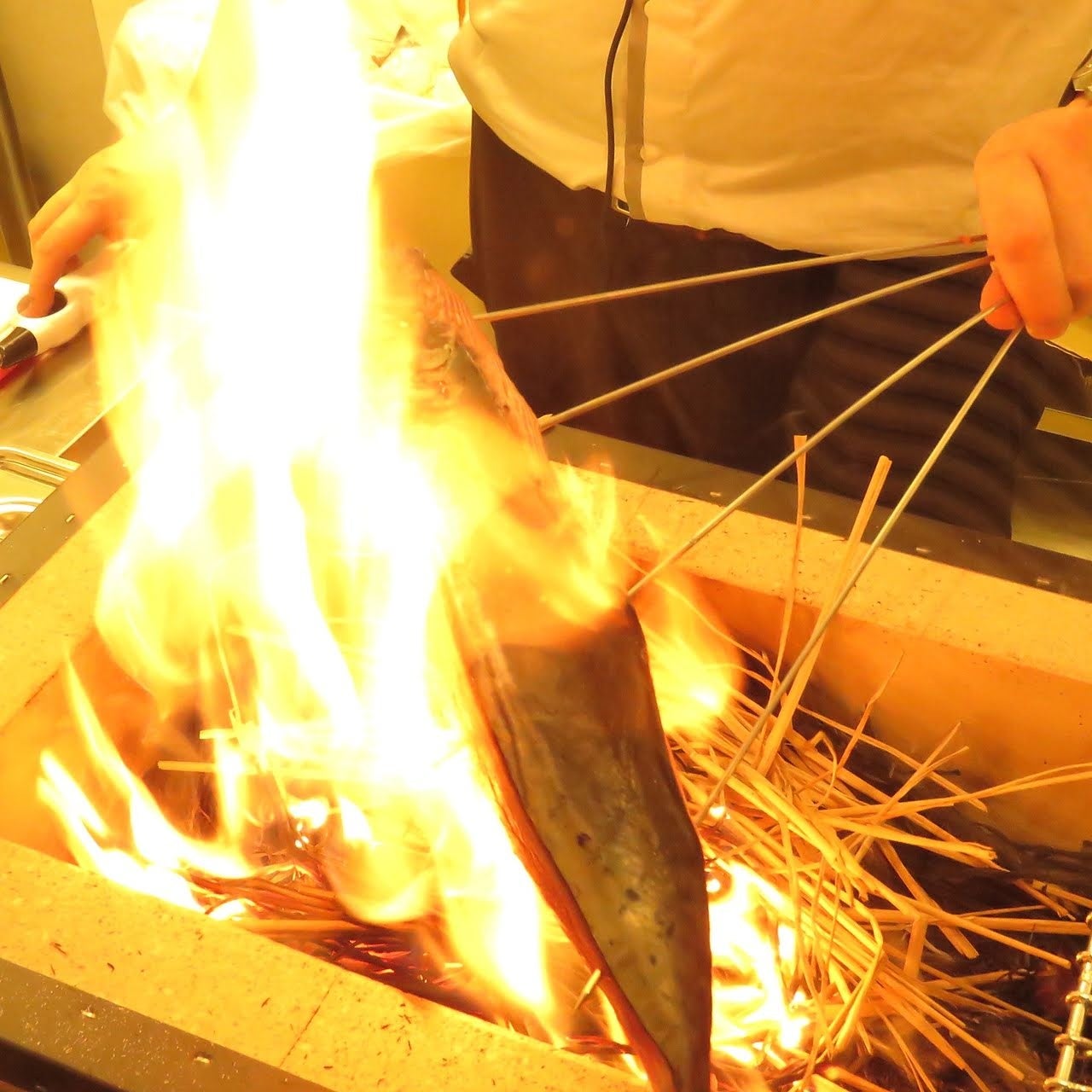 良質の脂身、鮮やかな赤い身、濃い旨味が特徴の『黒い海のダイヤ』を、藁で燻し旨味を凝縮させます。