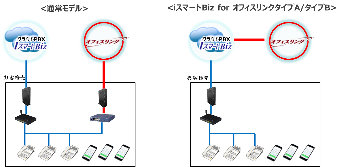 今まで「iスマートBiz」と「オフィスリンク®」を利用するには、お客さま拠点への専用回線の敷設と機器の設置が、サービスごとに必要でした。今回、提供を開始する本サービスをご利用頂くことで、予めアイルネットのデータセンターに設置した機器を介して「オフィスリンク®」がご利用頂けます。