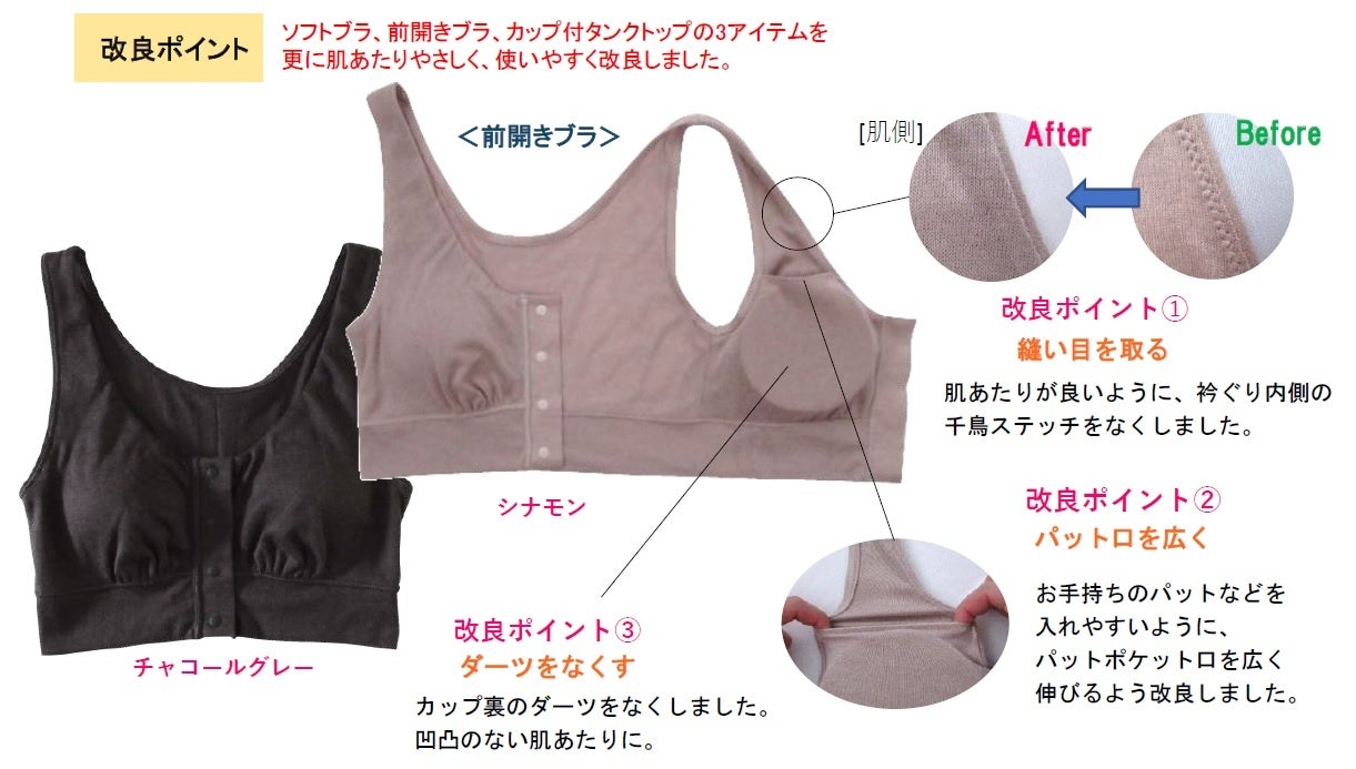 乳がん患者の声に応え、人気アイテムを更に肌あたりやさしくリニューアル