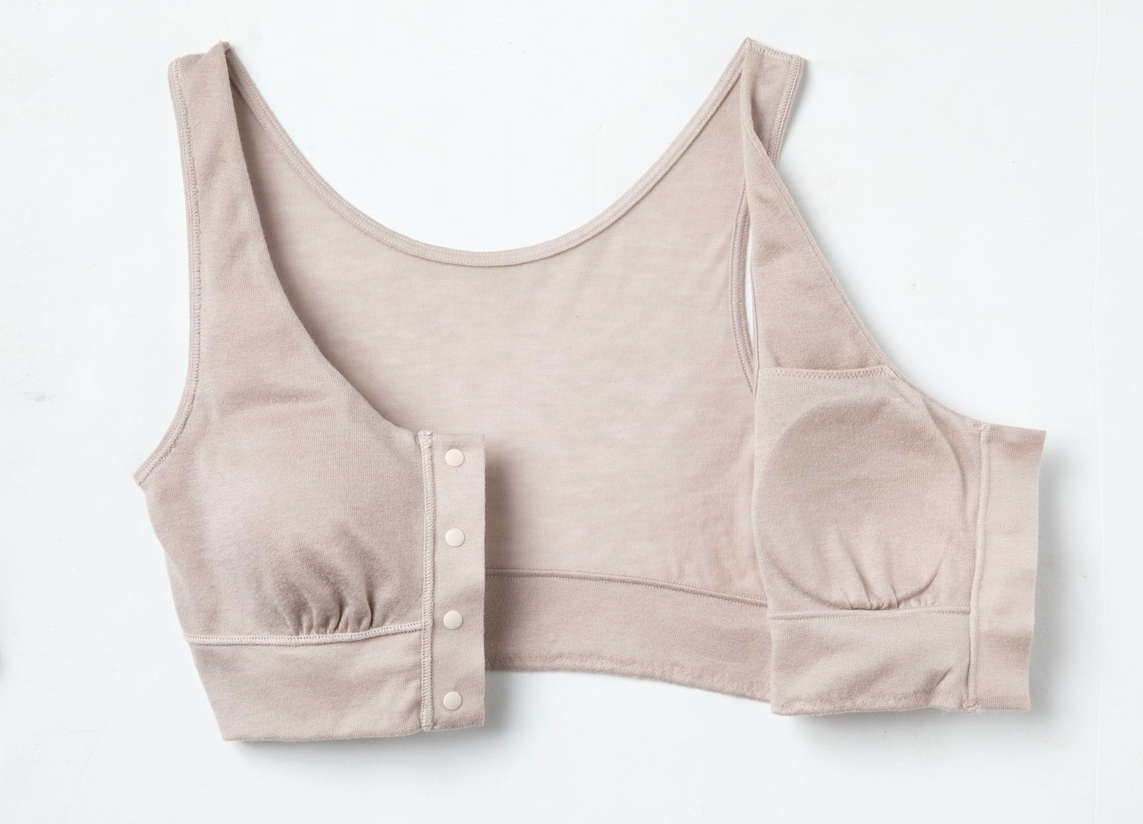 そこでFleep は、3 月18日発売の「サマーシリーズ(ノンレースタイプ)」のうち 3 アイテムを更に肌あたりよく改良。 衿元にあった縫い目をなくし、カップ裏はフラットなつくりにするなど、術後の肌にも負担の少ない仕様にリニューアルします。