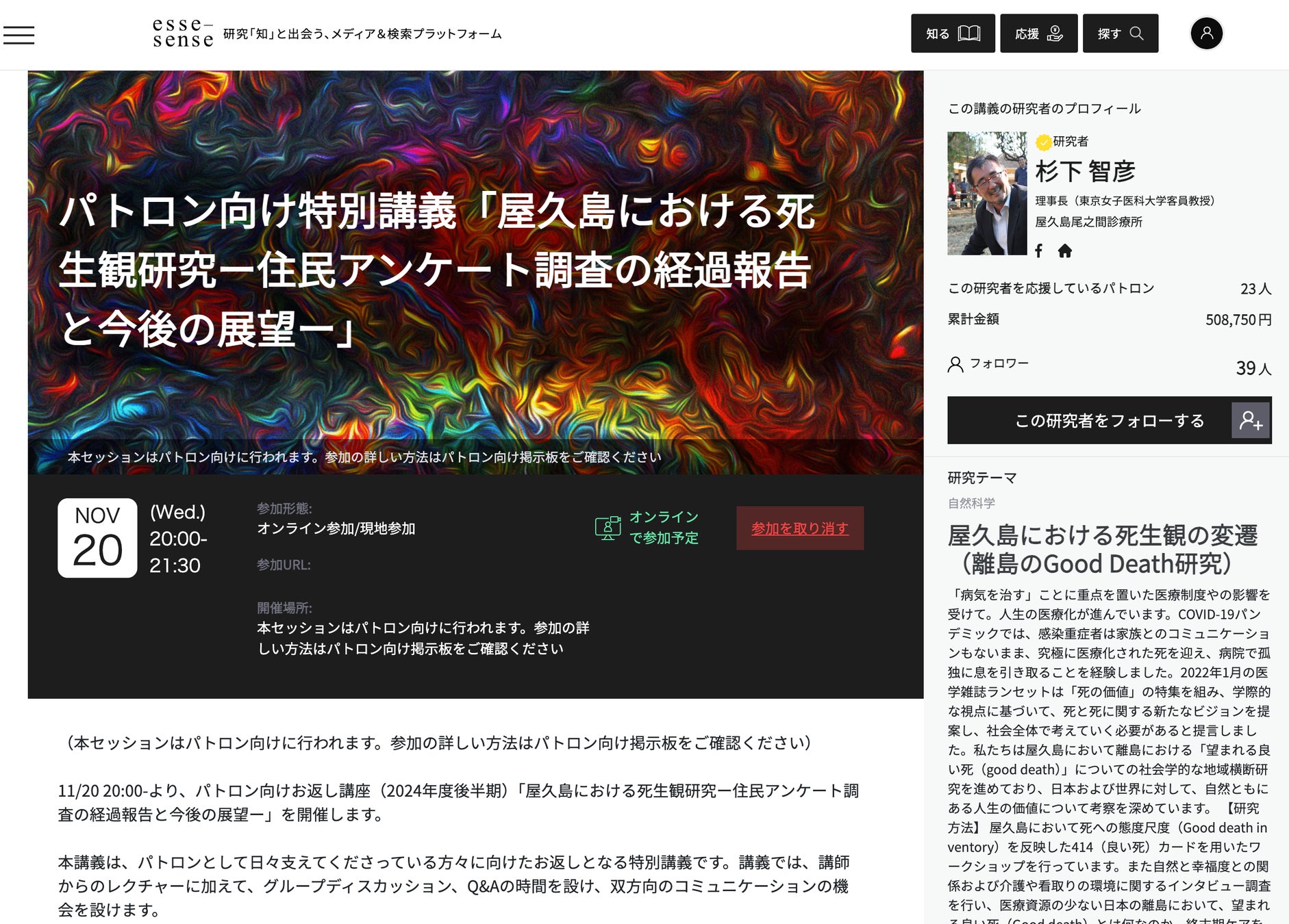 研究者が作成した「講演・講義ページ」は、メディア「esse-sense(エッセンス)」に集まる約20万人の読者全てを直接的な潜在参加者するため、シンプルな連動によってそのアウトリーチ活動を支援することが可能です。