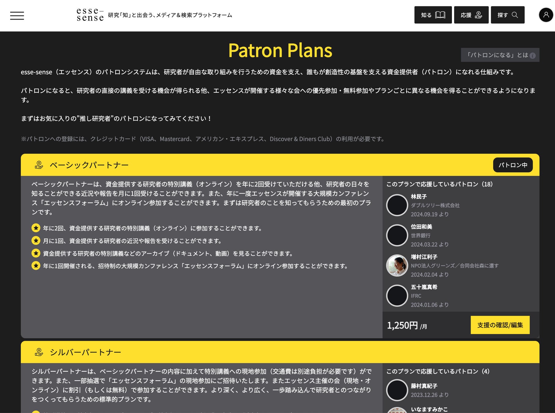 今後は、既に試験運用を始めている、継続的な資金提供者の登録を行う「パトロンサービス」と連動した、研究知の発進による研究基盤を整える資金獲得の実現についても本格的な運用を開始していくことを構想しています。