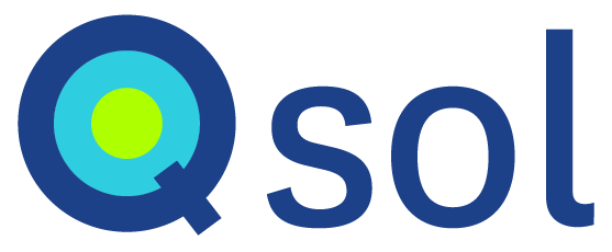 「Q」は“Quest”[クエスト:探求]・“Quality”[クオリティ:品質]・“Q-SHU”[九州]の3つ、また、「sol」には“Solution”[ソリューション:解決]・“Sol”[太陽(ラテン語)]の2つの思いを込めています。また、ロゴマークの「Q」には、当社が保有するチカラ(技術、経験、知識、判断力など)を多層の同心円、お客さまとともに現代社会の大海原に旅立つさまを斜めの線で表現し、グラデーションには清涼感のある先進的なイメージの色を使用しています。