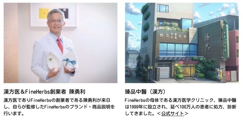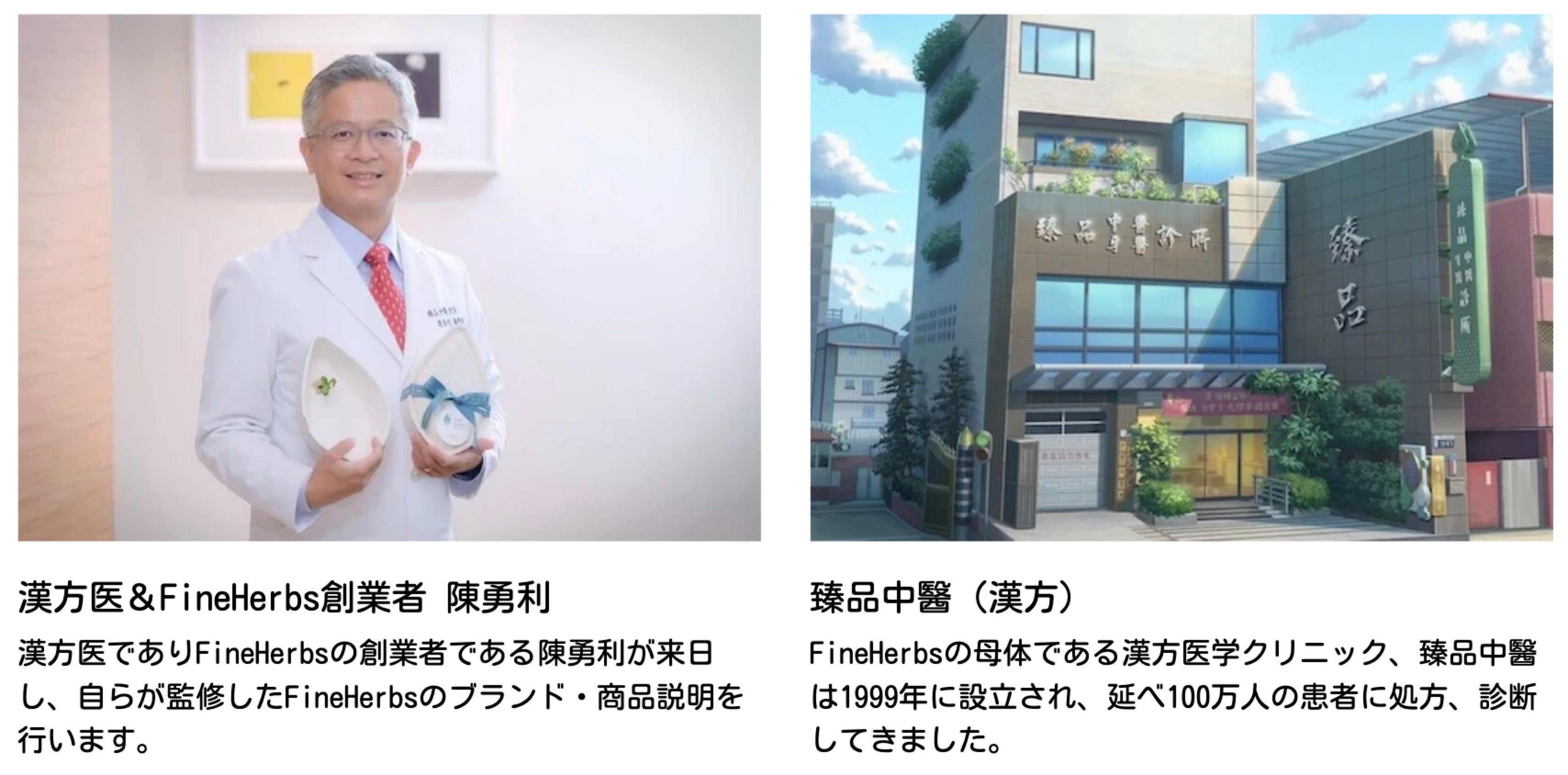 漢方医でありFineHerbsの創業者である陳勇利が来日し、台湾漢方に関して、FineHerbsのブランド、商品紹介を行います。