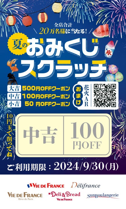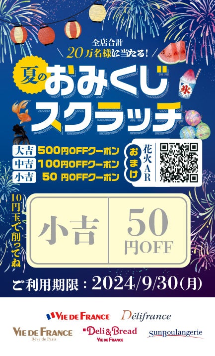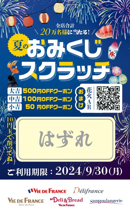 業40周年を迎えた株式会社ヴィ・ド・フランス(本社:東京都江戸川区)は、2024年7/20(土)~8/31(土)の期間、夏休みスペシャル企画『おみくじスクラッチ』を開催致します。