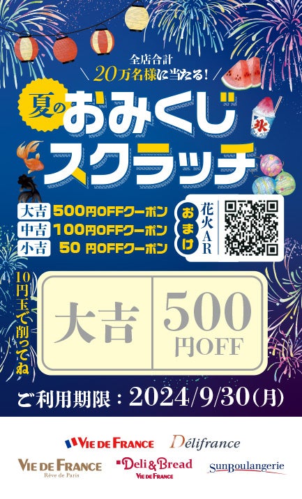 【ヴィ・ド・フランス】『おみくじスクラッチ』(7/20(土)~8/31(土)開催)~合計20万名様に当たるドキドキ&ワクワクの夏休みスペシャル企画~