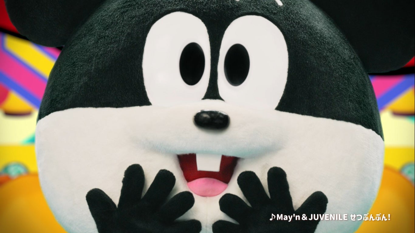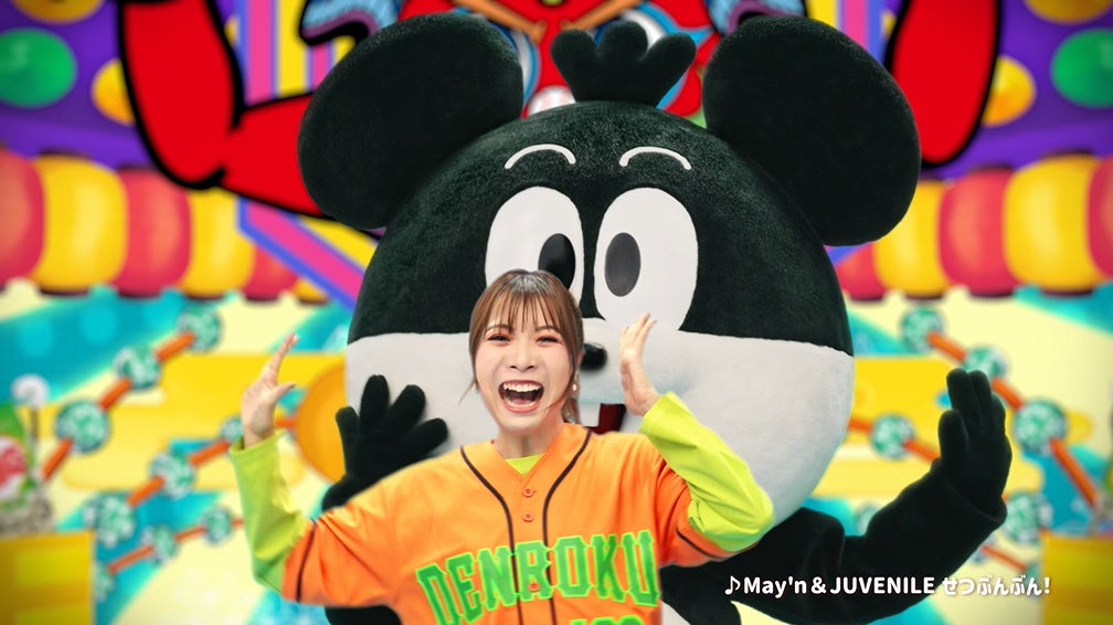 子どもさん向け番組のような世界観のセットのようなステージでMay'nが作詞し、JUVNILEが作曲・編曲した「せつぶんぶん!」に合わせて、May'nがでん六のキャラクター「でんちゃん」と一緒に楽しく歌って踊って豆まきをして、節分を盛り上げます。2人のバックには今年のでん六節分キャラクター鬼の「二頭龍鬼」が厄除け・無病息災のご利益を与えるべく鎮座しています。