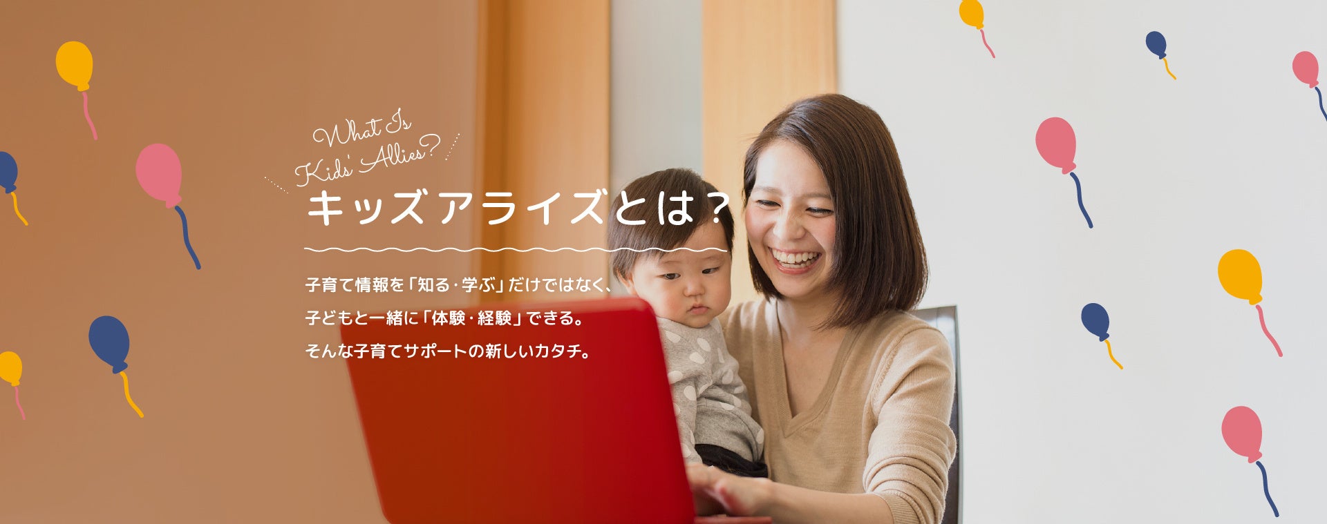 子育て情報を「知る・学ぶ」だけでなく、子どもと一緒に「体験・経験」できる機会を創出することにより、子どもの未来を応援することを目的とし、育児におけるお役立ち記事の配信や子育て商品の紹介、イベントの開催等をしています。