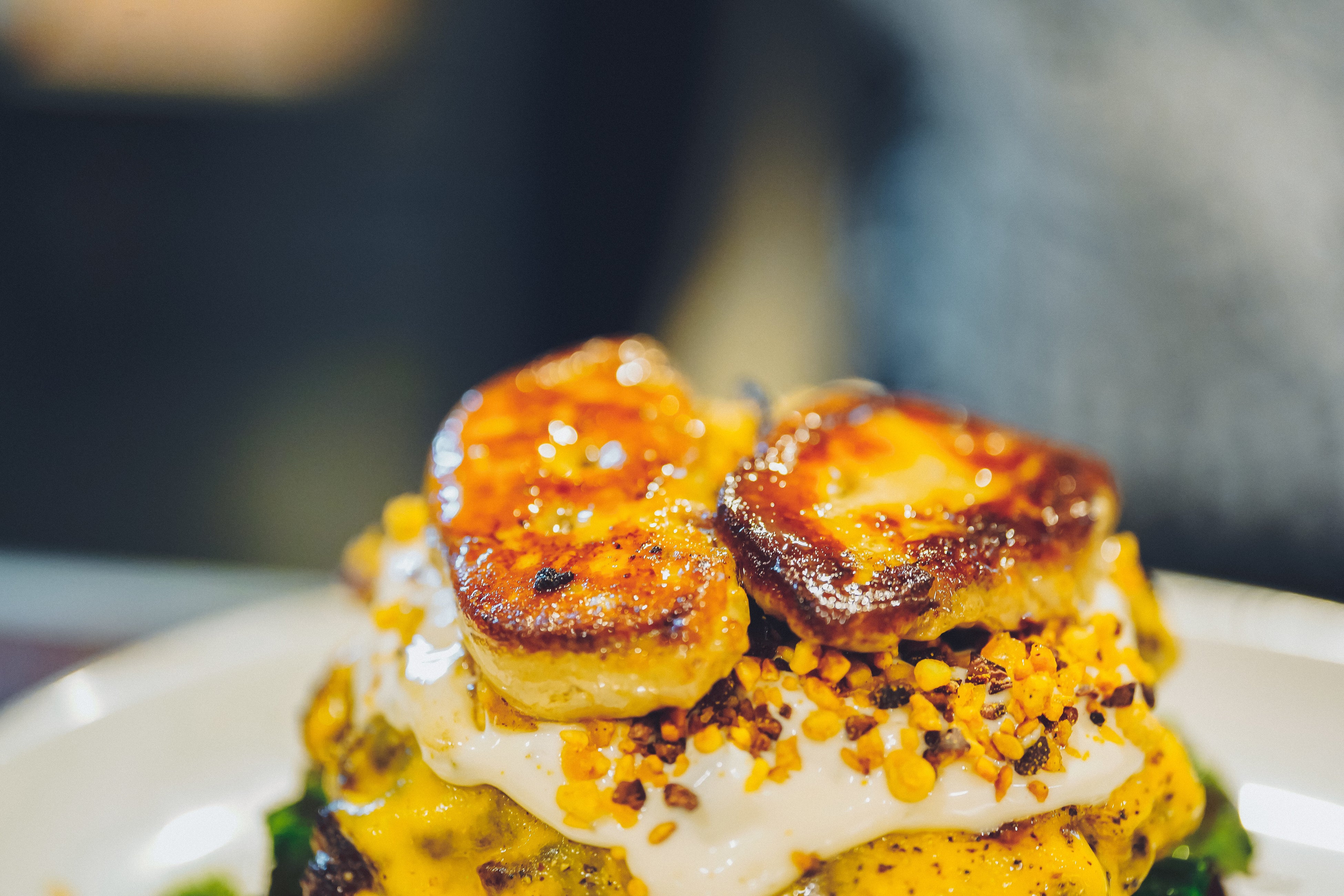 それらをまとめるタルタルソースとバルサミコビネガーを入れたテリヤキソース、「Seiste」のスナック七味、青のり、という構成になっています。