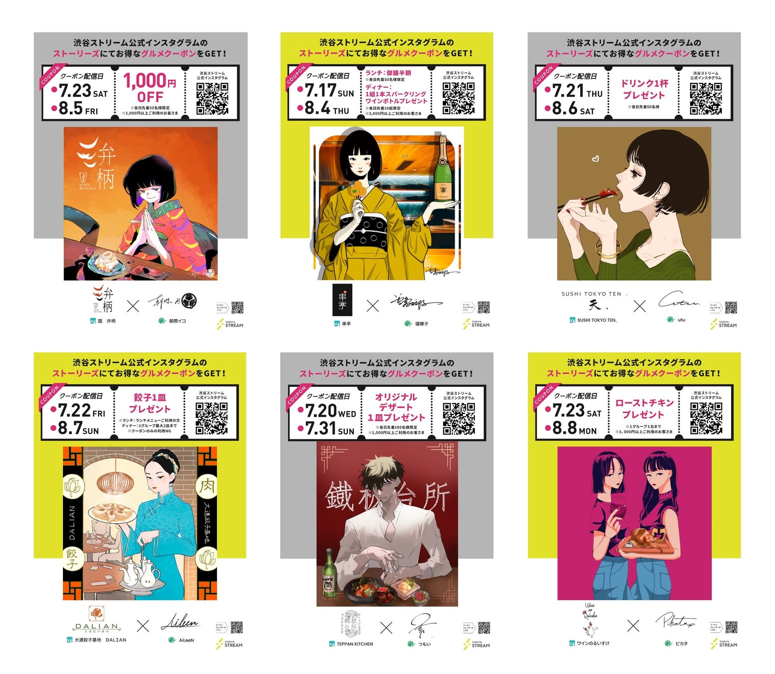 渋谷ストリーム内飲食店舗の日替わりイラストグルメクーポンを毎日配信!人気イラストレーターが描く似顔絵プレゼントキャンペーンも先行して開催!