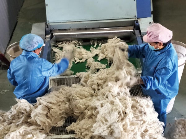2021年に設立した臨河整毛工場は全自動に近い最新設備により労力を削減し自社牧場と周辺地域のカシミヤ、ウール、キャメル、ヤクを年間2000トン整毛しています。