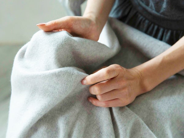 PUREカシミヤに遜色のない柔らかな風合いを織物でも編物でもご確認いただけます。