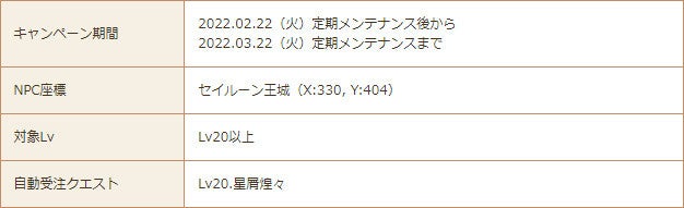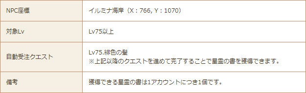 セイルーンの王女が日々の功績を感謝して、あなたに褒美を渡すために「星詠み師・アイーシャ」を城下町に招きました。アイーシャに話しかけるとアイテム「星屑BOX」が貰えます。星屑BOXは4時間に1度使用でき、使用すると冒険に役立つアイテムが1つ獲得できます。