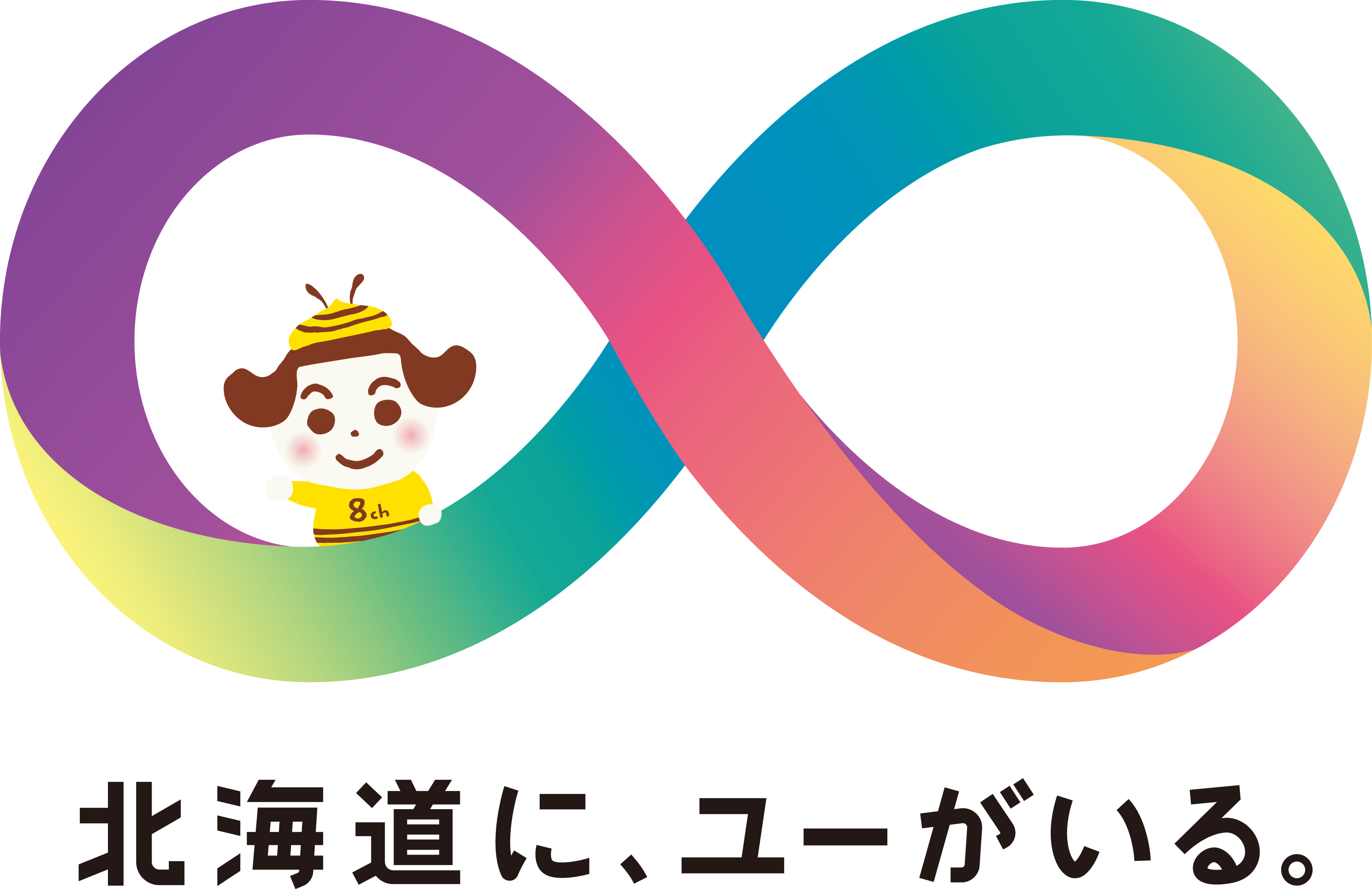 キャッチフレーズとあわせて使用する 50 周年のコミュニケーションロゴとして、UHB のチャンネル「8」と、無限大「∞」を掛け合わせたマークを制作しました。北海道の皆様と UHB がつながり合い、よりよい循環を生んでいくことによって、北海道の可能性が限りなく広がっていくことを表現しています。
