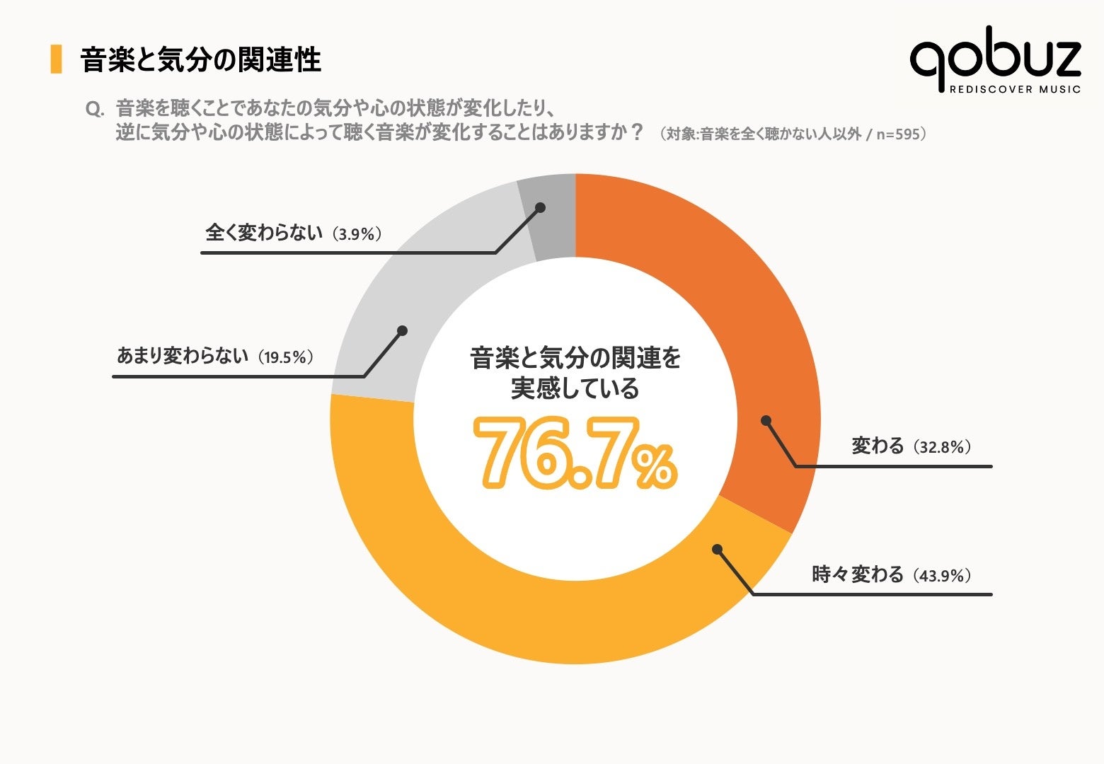 約7割の人が日常的に音楽を楽しんでいると回答。さらに76.7%の回答者が音楽によって気分や心の状態が変わると答え、音楽が人々の心理状態に大きな影響を与えていることが明らかになった。