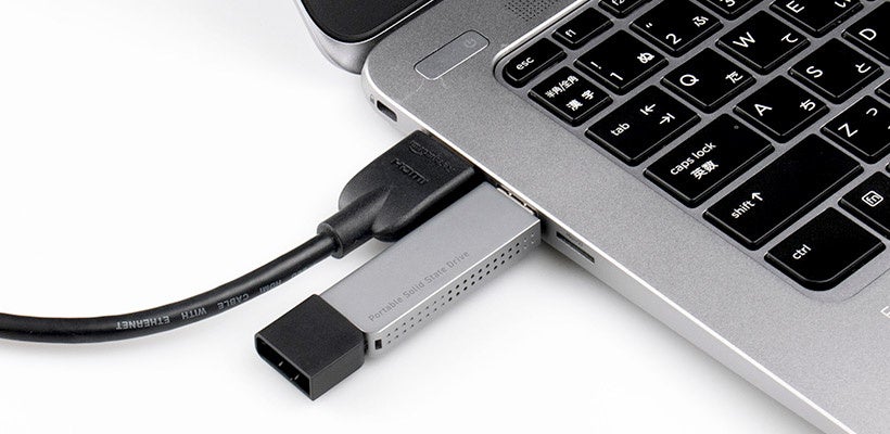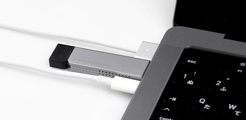 USBメモリのような超小型・軽量のSSD。省スペースで持ち運び、パソコンに直挿しできます。中身はUSBメモリより大容量、250GB/500GB/1TBをラインナップ。