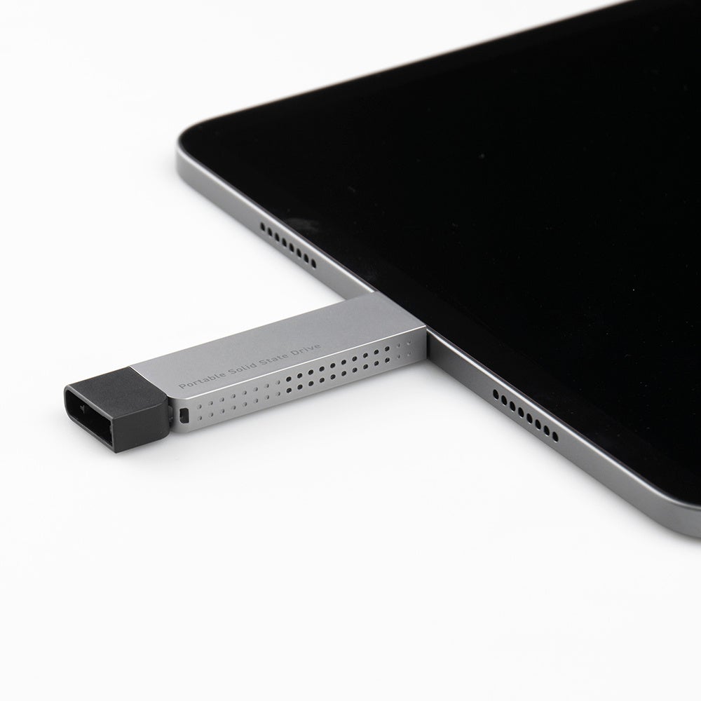 ▼SSD業界最薄クラス※!平置きしたiPadや薄型タブレット・薄型パソコンへ直挿し可能【USB-Cモデルのみ】[※2023年8月当社調べ]