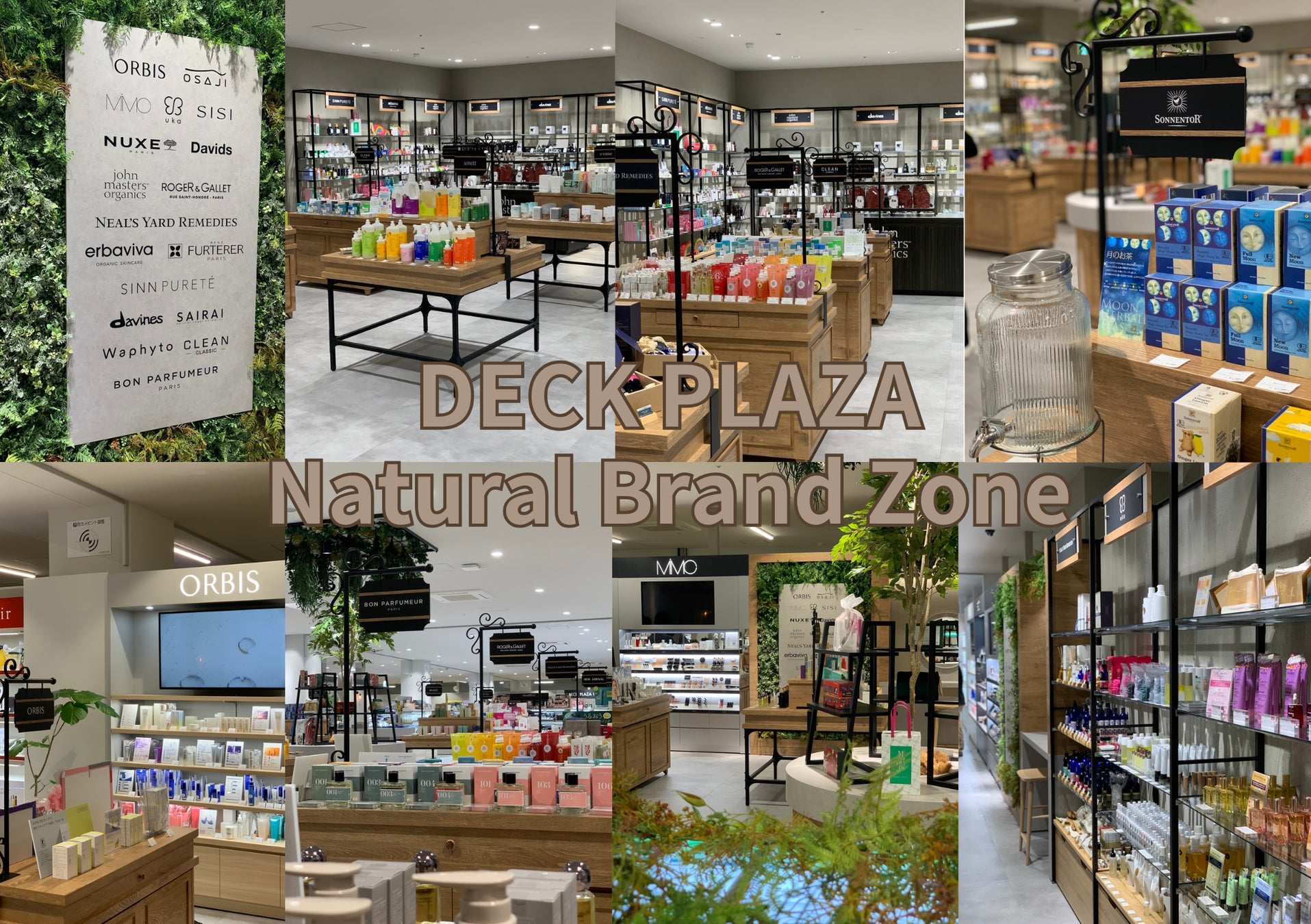 DECKPLAZAナチュラルブランドゾーンのコンセプトとして「ビューティー&ウェルネス」をテーマに、「オーガニック、ナチュラル、ヴィーガン、エコ、エシカル、サスティナブル」といった人や地球環境に配慮したブランドを中心に誘致し完成したエリアとなります。