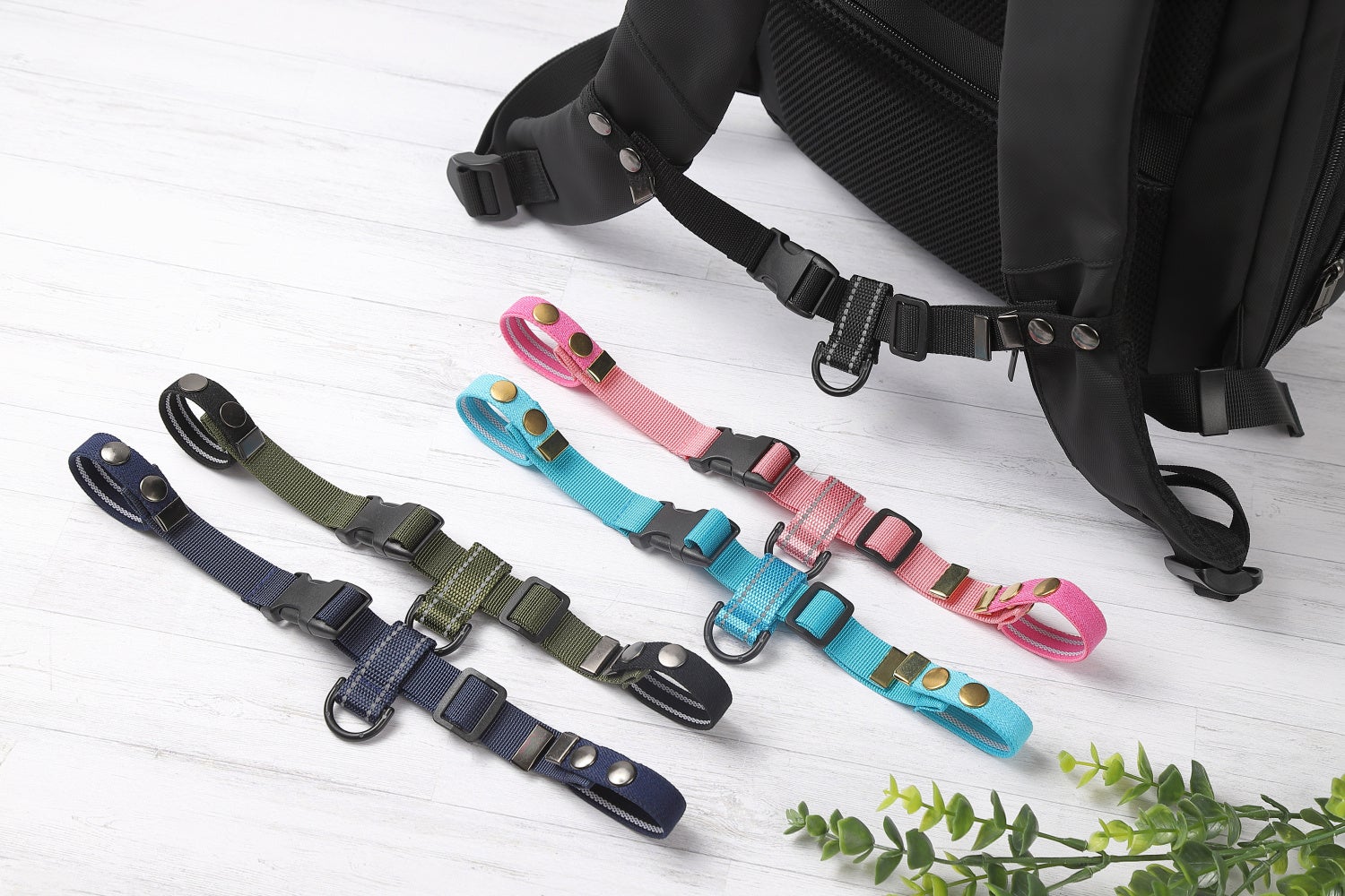 光を反射し夜もOK♪新たにバックルを追加したリュックのズレ防止ベルトが新登場!!