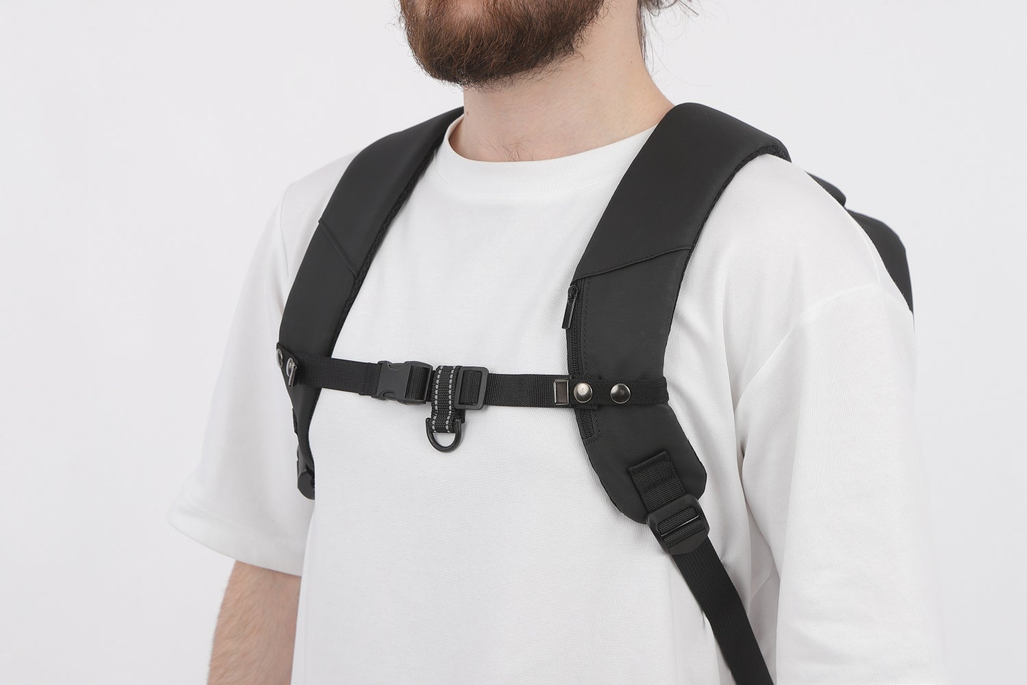 胸元でしっかり固定することで、リュックのズレや揺れを防止。荷物が多い日や長時間の移動でも背負い心地が安定し、快適に持ち運べます。