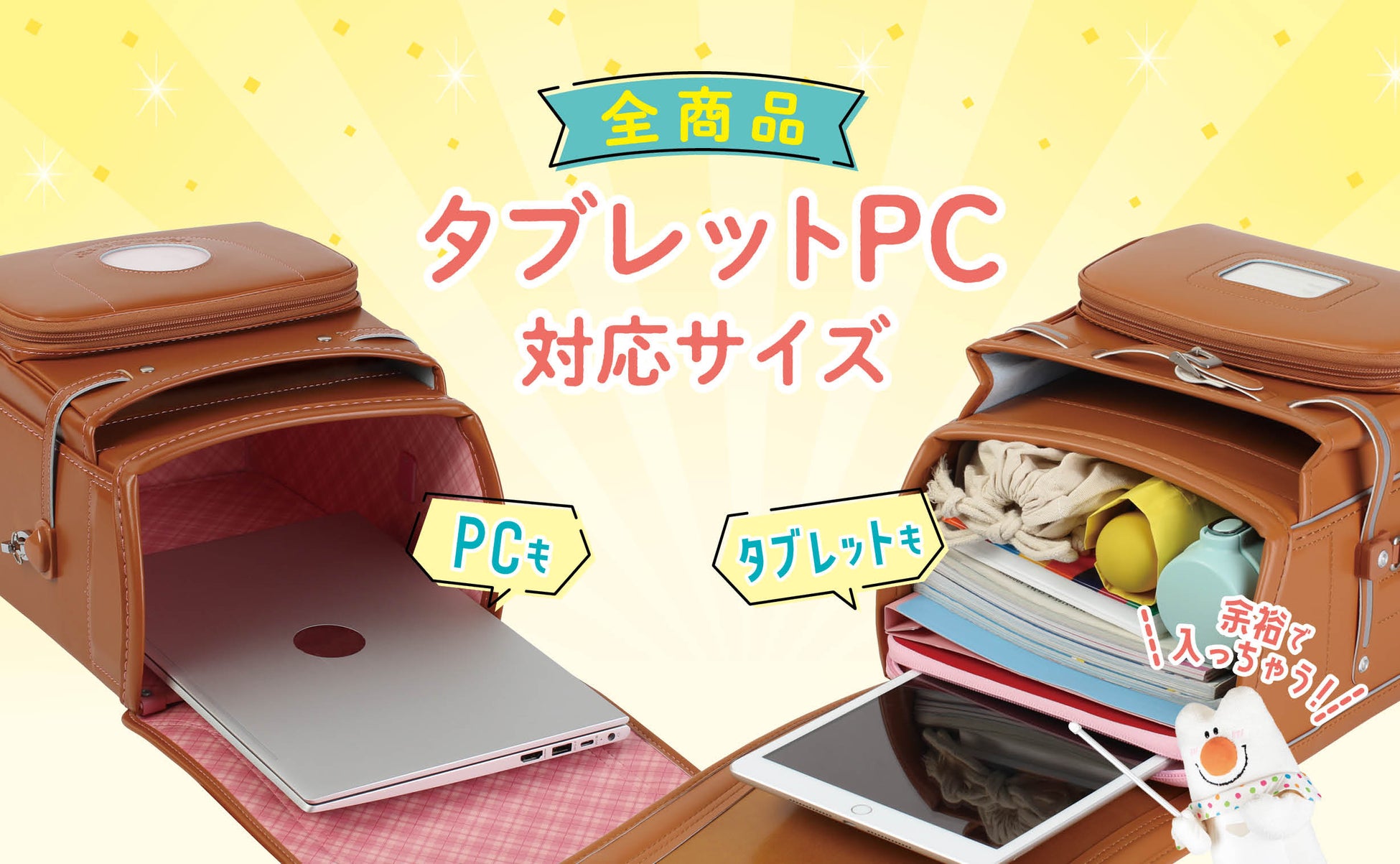 タブレット端末やノートPCがラクラク収納できる「大容量」がこれからの標準です。ますます進む学習スタイルのデジタル化に対応した使いやすいサイズ設計です。