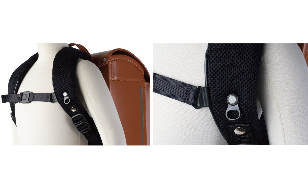 肩ひもと背あてにメッシュ素材を使用した、ハイブリッドなランドセルを実現。