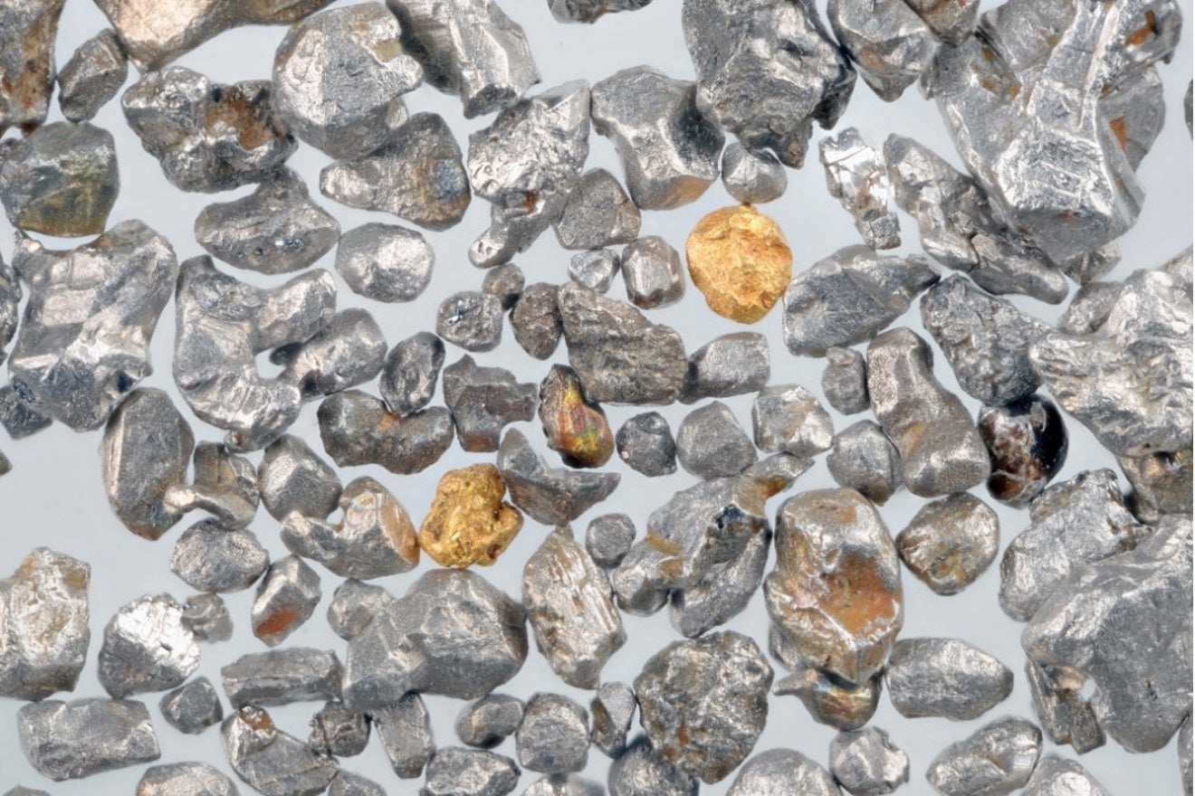 研究グループは2019 年、熊本県美里町山中の河川から砂白金を見出しました。その砂白金を電子顕微鏡で詳細に調べたところ、ほとんどの粒子がプラチナ(Pt)を主成分とするイソフェロプラチナ鉱(Isoferroplatinum: Pt3Fe)(図1)であることがわかりました。採集された砂白金のほとんどがプラチナを主成分とすることは、当地がプラチナ系砂白金の鉱床であることを意味しています。