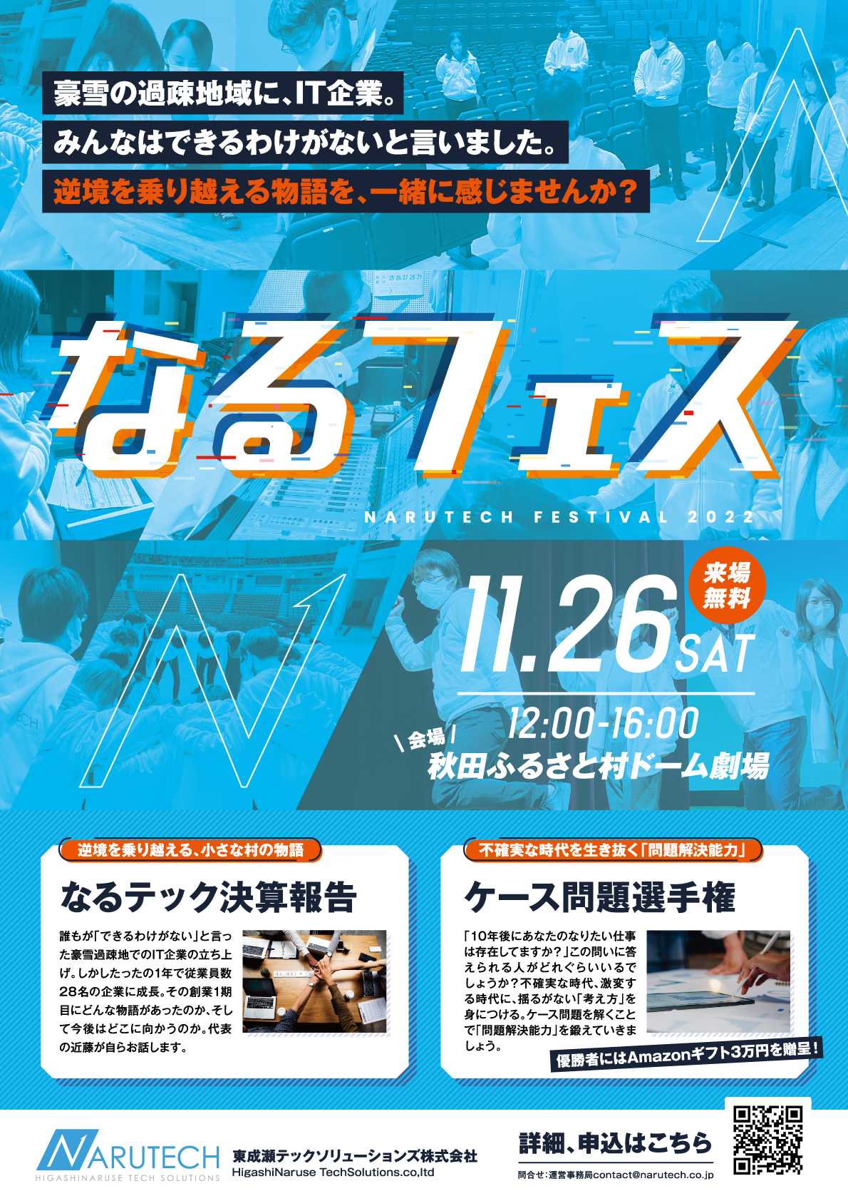 【秋田県】東成瀬村発ITベンチャー企業「なるテック」、「なるテックフェスティバル2022」を開催します