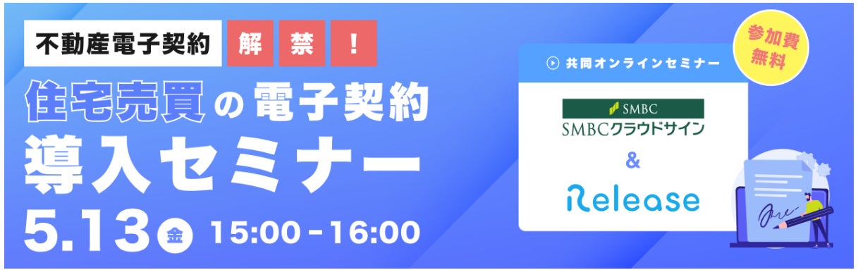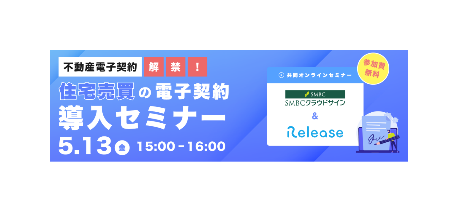 不動産特化電子契約管理サービス「RELEASE(レリーズ)」無料オンラインセミナーをSMBCクラウドサインと共催決定