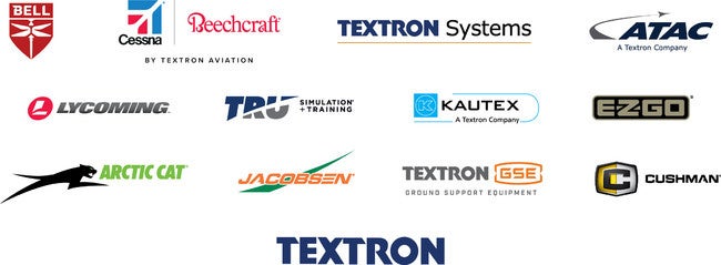 テキストロンは航空・防衛・産業・金融ビジネスの世界的ネットワークを活用して、顧客に革新的なソリューションとサービスを提供する多業種企業です。テキストロン傘下のベルヘリコプター、セスナ、ビーチクラフト、ホーカー、ヤコブセン、カウテックス、ライカミング、E-Z-GO、グリーンリー、テキストロン・システム等の強力なブランドは世界中で知られています。
