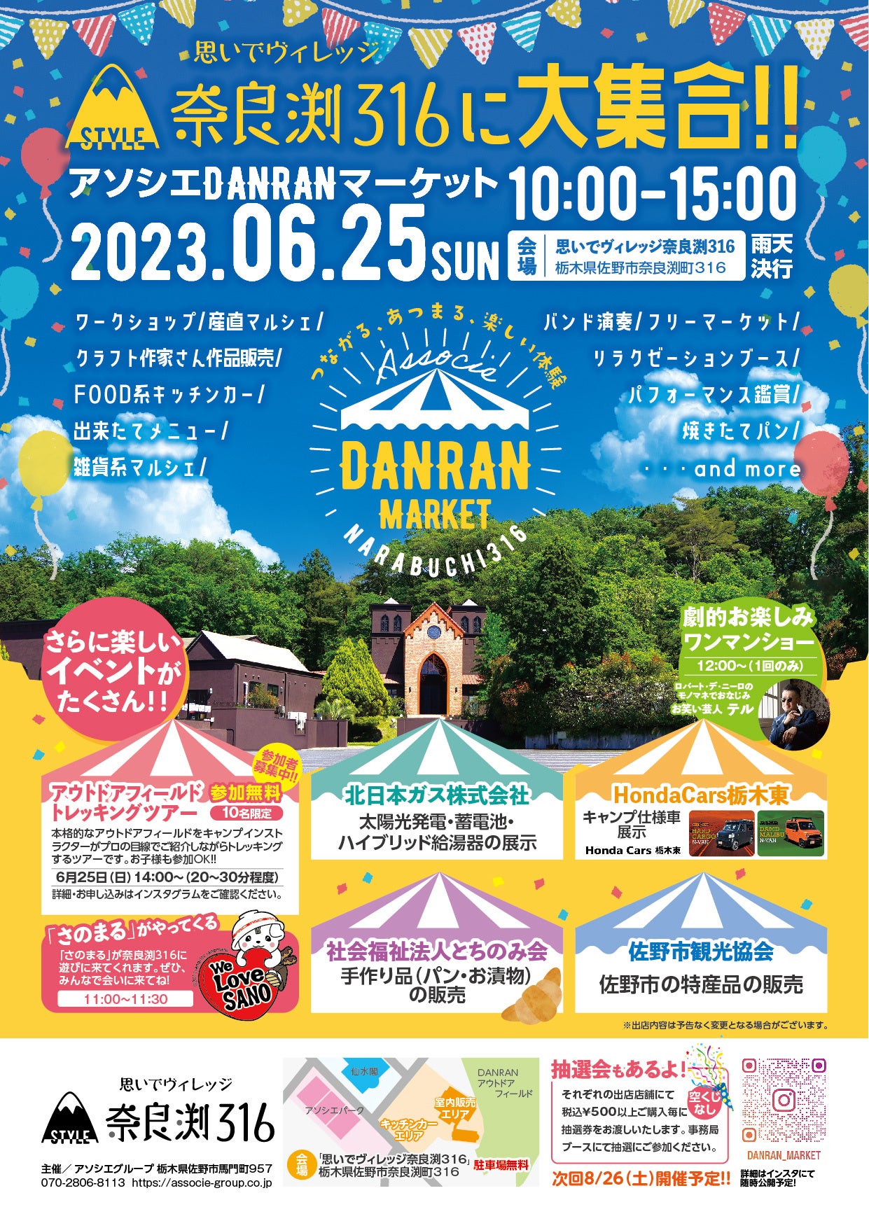 栃木県佐野市 奈良渕316にて アソシエDANRANマーケット開催!