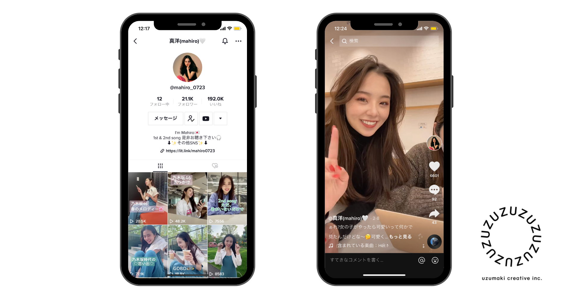 Z世代向けSNSマーケティング事業を展開する、株式会社uzumaki creative(本社:東京都渋谷区、代表取締役:木田陽真、以下:uzumaki creative)は、株式会社ゼスト(本社:東京都渋谷区、代表取締役社長:高田裕充)に所属するアーティストで元乃木坂46の真洋(mahiro)のTikTokの運用支援、2ndシングル『ただ、君がいないだけで』のミュージックビデオを制作をいたしました。