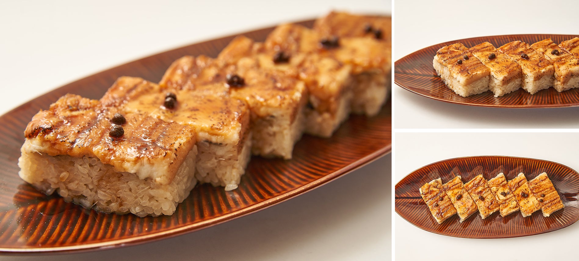 1本1本丁寧に炊きあげた肉厚な大穴子と、赤酢を2種類ブレンドしたこだわりのシャリで作った押し寿司です。