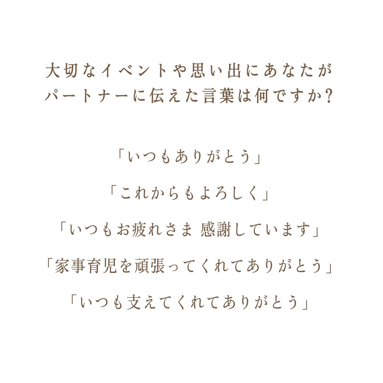 →日ごろの感謝の気持ちや労いの言葉が大半を占める結果に。このような心のこもったメッセージをプレゼントに添えれば、愛する妻の心をより一層温かくすることでしょう。
