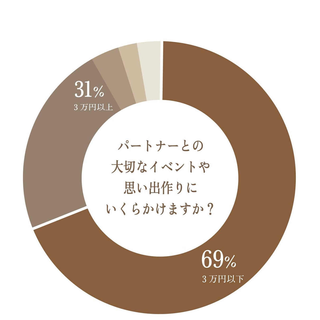 これは、「パートナーとの大切なイベントや思い出作りにいくらかけますか?」という質問に対し、約3割が「3万円以上」と回答していることからも納得できる結果であることがうかがえます。