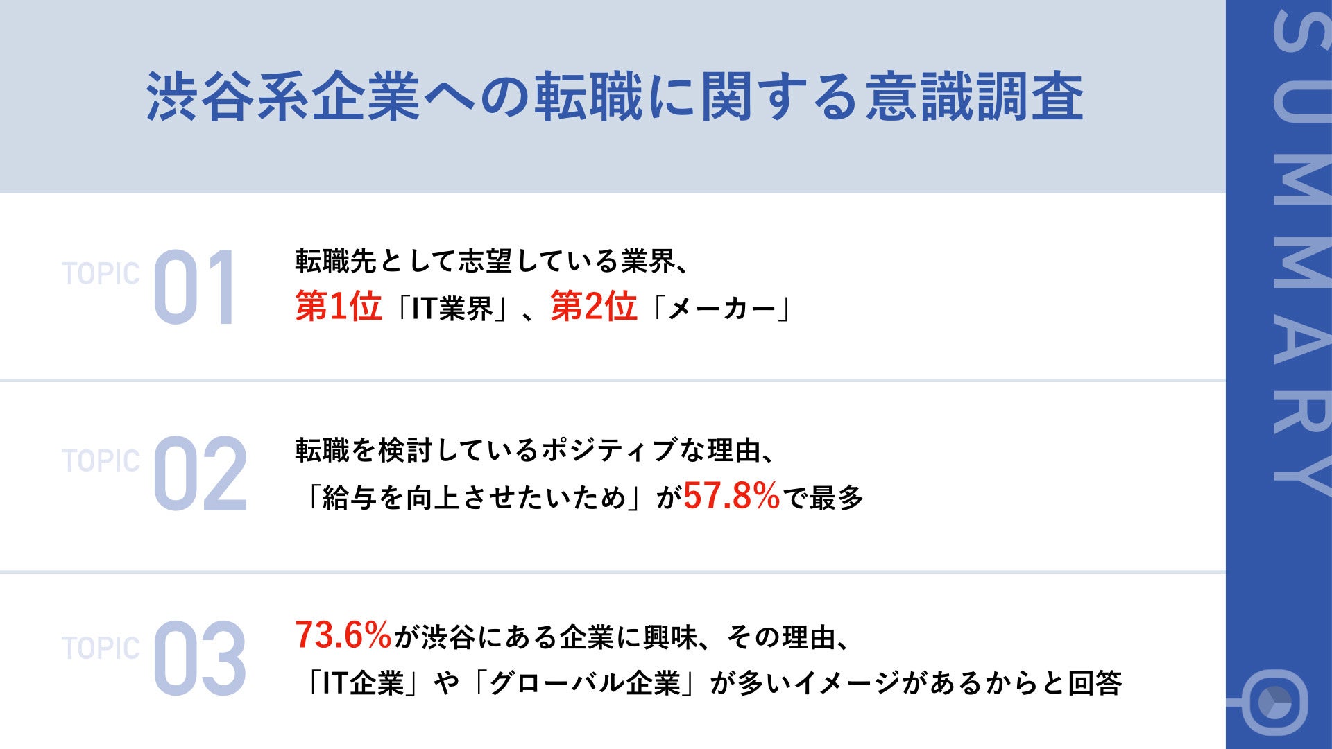 - 73.6%が渋谷にある企業への転職を検討