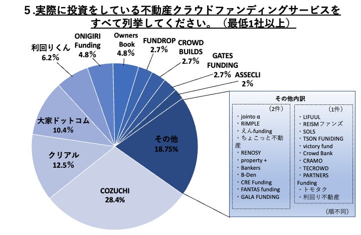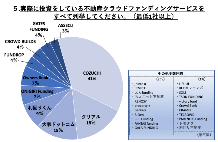 Q5. 実際に投資をしている不動産クラウドファンディングサービスをすべて列挙してください。(最低1社以上)