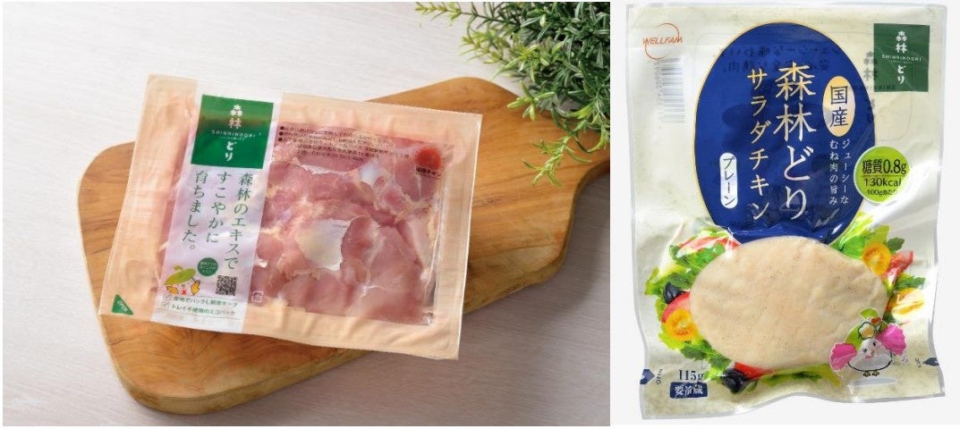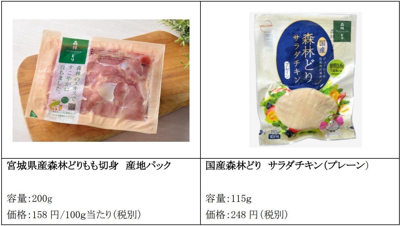 “宮城県産森林どりもも切身 産地パック”と“国産森林どりサラダチキン(プレーン)”は、一部量販店にて販売しています。