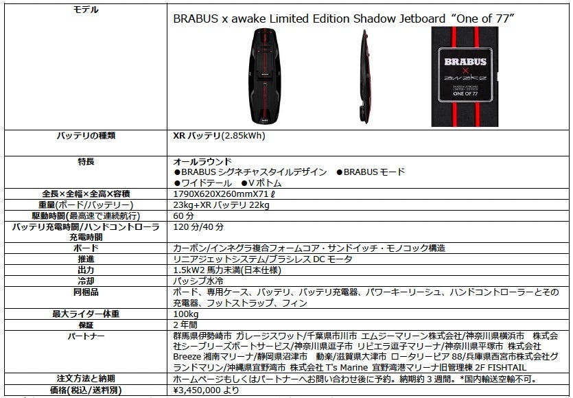 第一弾コラボレーションモデル【BRABUS x awake Limited Edition Shadow Jetboard “One of 77”】の国内予約販売を開始します。