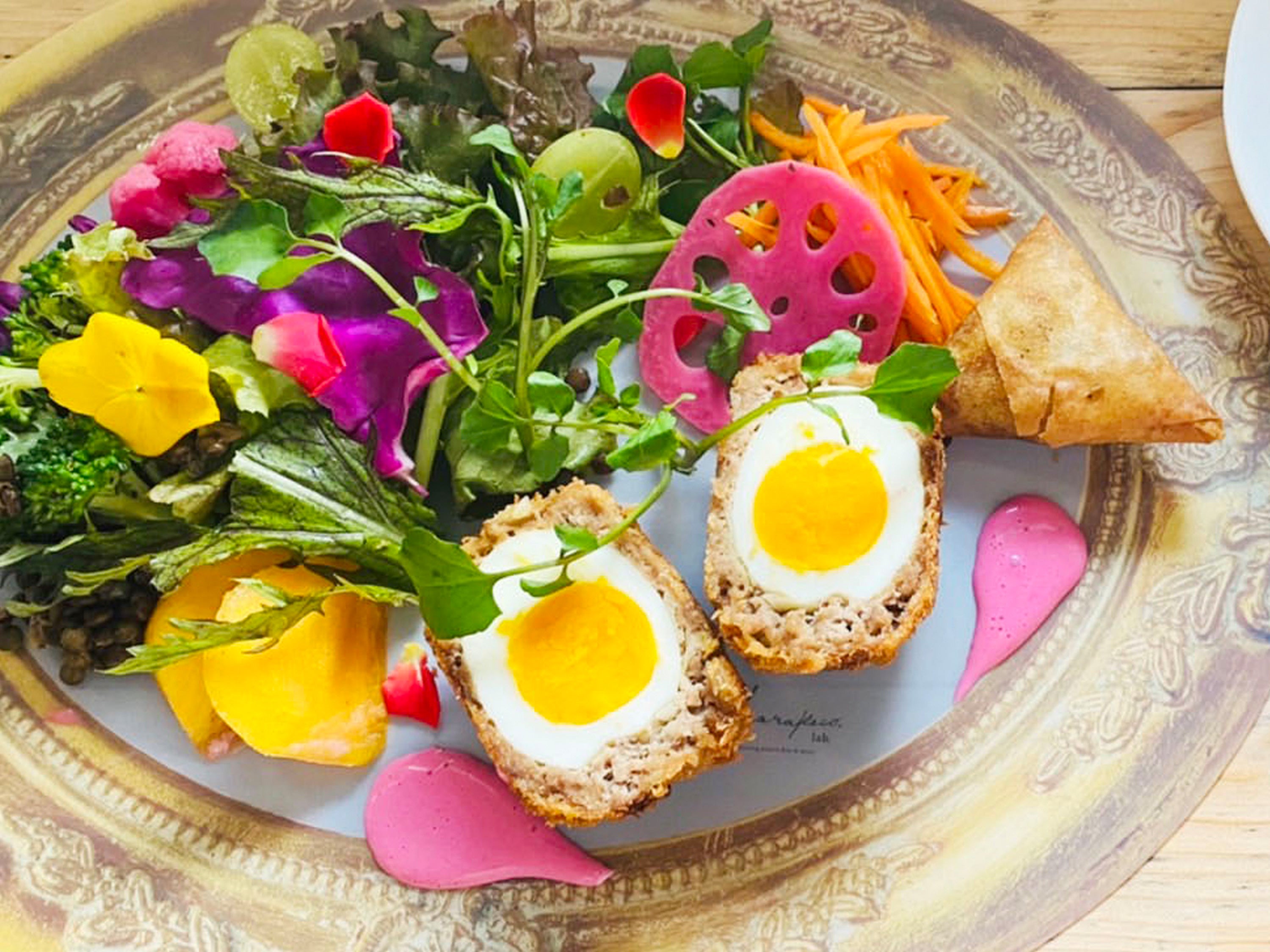 ランチは週替わりのスペシャルプレートランチ、スープランチがあり、オリジナルグッズのひとつであるアートフードプレートにて提供します。