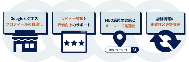 「定期的な情報更新」「地域別情報の最適化」「誤った情報の修正」といった施策により、店舗情報の正確性を常に担保することで、顧客との信頼関係を構築します。