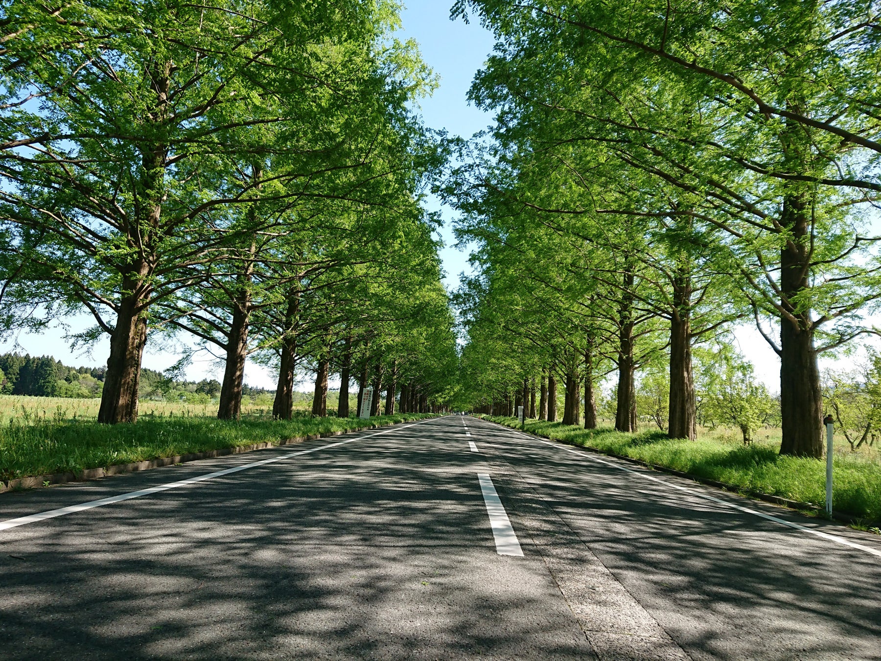 全長約2.4kmにわたり約500本のメタセコイアを眺望できフォトスポットとして有名