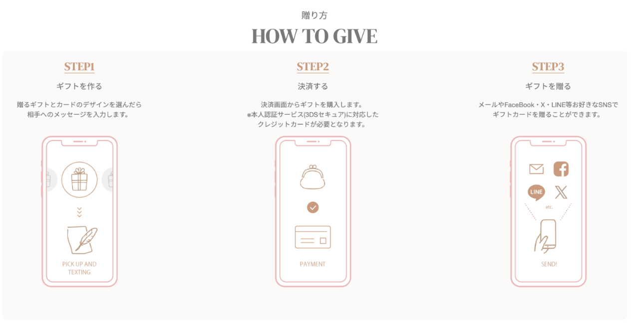 SNSやメールを通じて簡単に贈り合うことが出来る、USAGI ONLINE eギフトをご用意。
