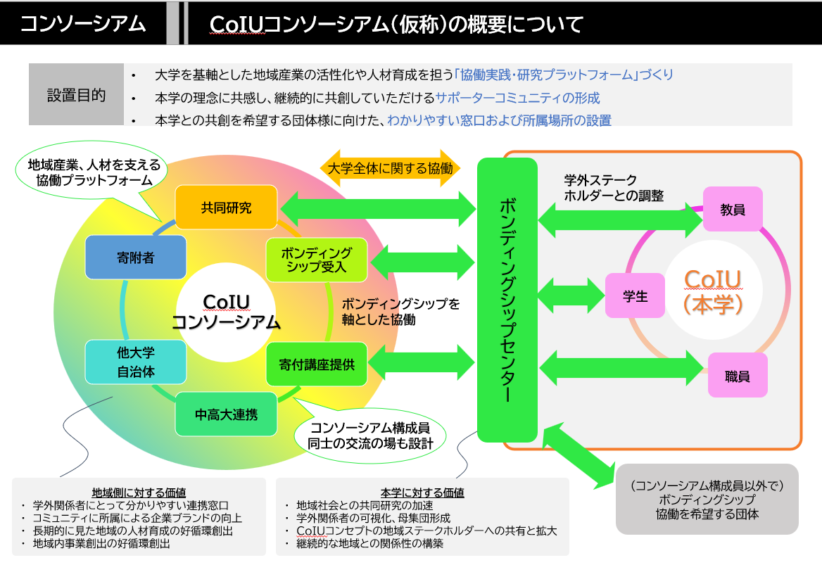 CoIU(仮称)の設立と合わせて、コンソーシアム(共同事業体)の設立も予定しております。設置目的は以下のとおりです。