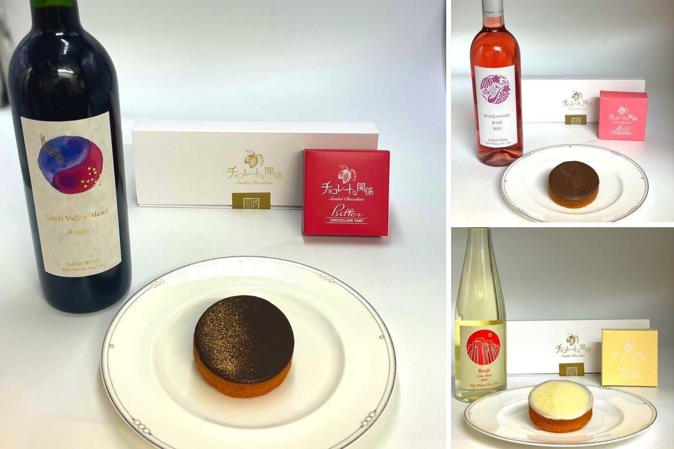 宮城県初のワイナリーである秋保ワイナリーと共同開発し、フランス ヴァローナ社の最高峰クーベルチュールチョコレートを使用した生チョコワインタルトを3種類詰め合わせで発売!