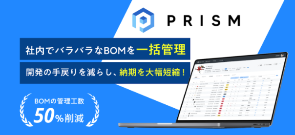 「PRISM」は、社内に散らばった製品開発情報を一元管理できるクラウド型製品開発プラットフォームです。製造業において今まで断片化されていた図面、仕様、原価、在庫、取引先、品質情報といったデータをBOM(Bill Of Materials、部品表)の上で統合させることで、バリューチェーンのDXを実現します。