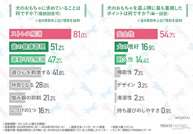 今回の調査結果では、犬の飼い主がおもちゃに対してどういったニーズがあるのか、またかじり木についての実態が明らかになりました。